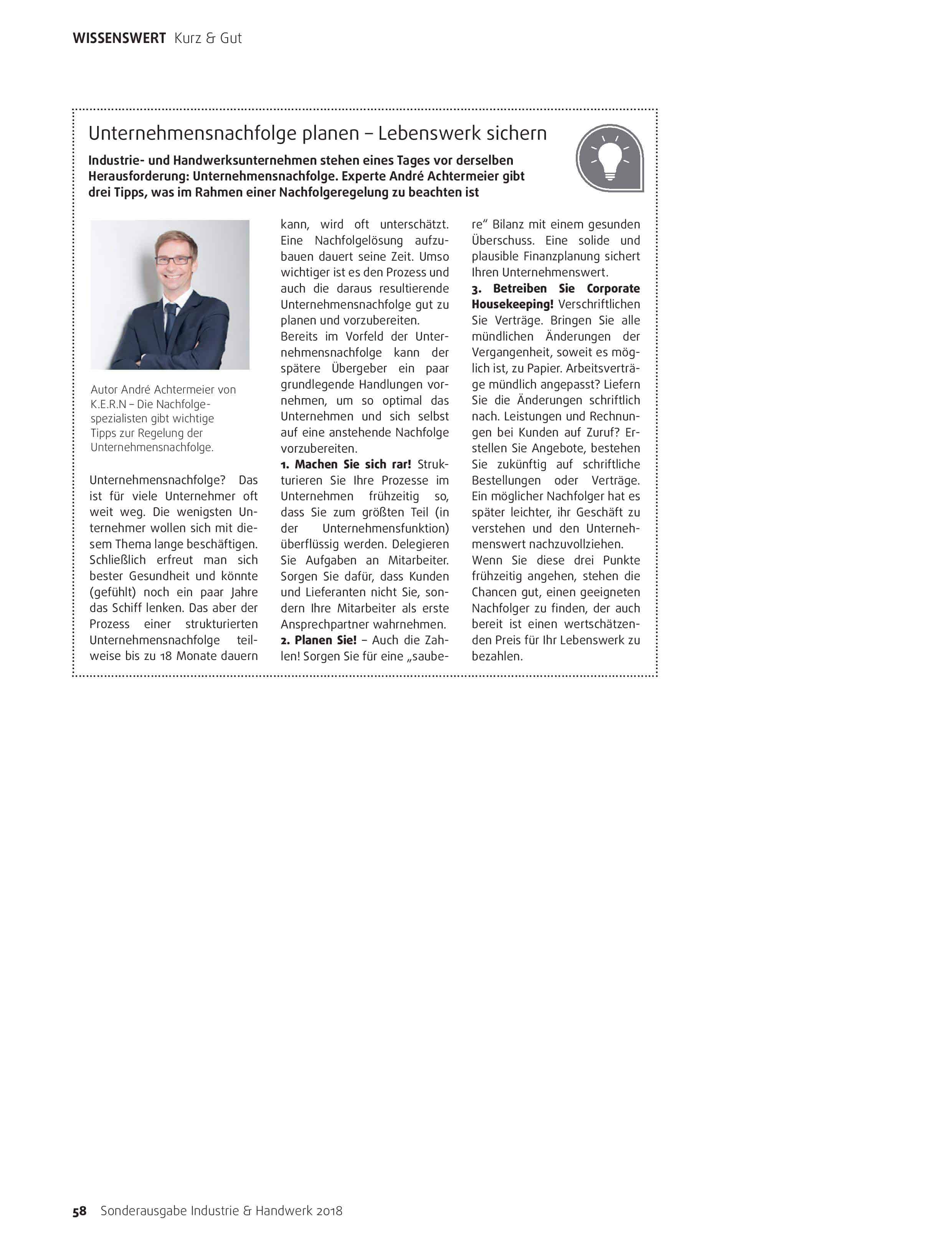 Im Interview stellt K.E.R.N drei pragmatische Tipps für eine gute Vorbereitung einer Unternehmensnachfolge vor.