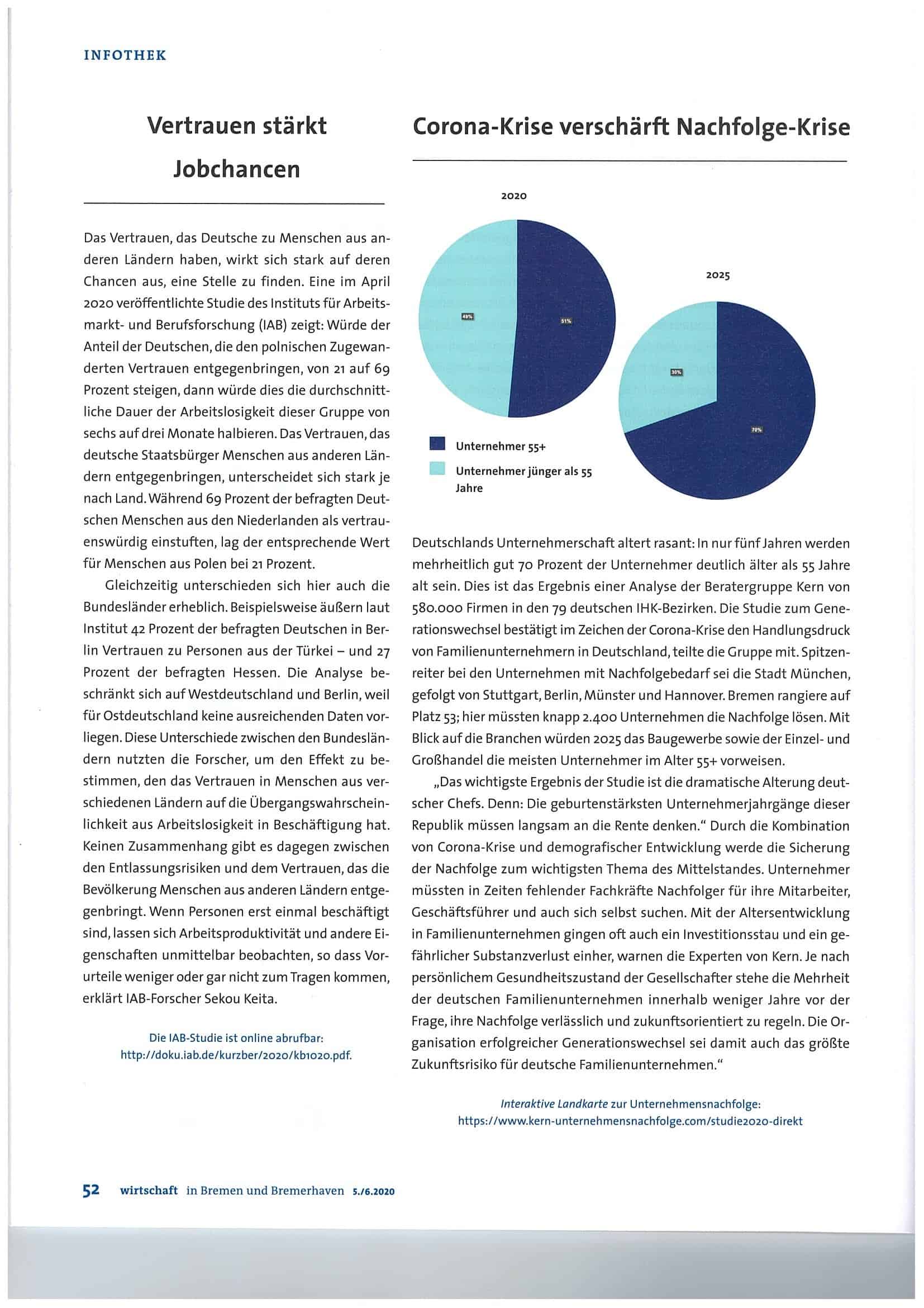 Wirtschaft in Bremen und Bremer­ha­ven Juni 2020 - Corona-Krise verschärft Nachfolge-Krise